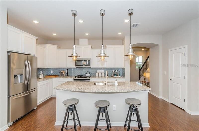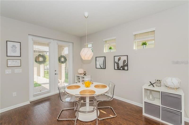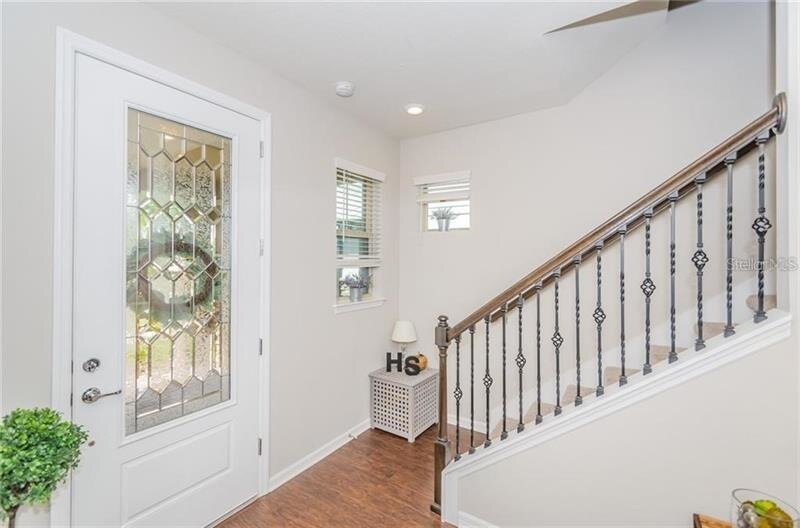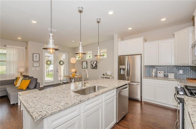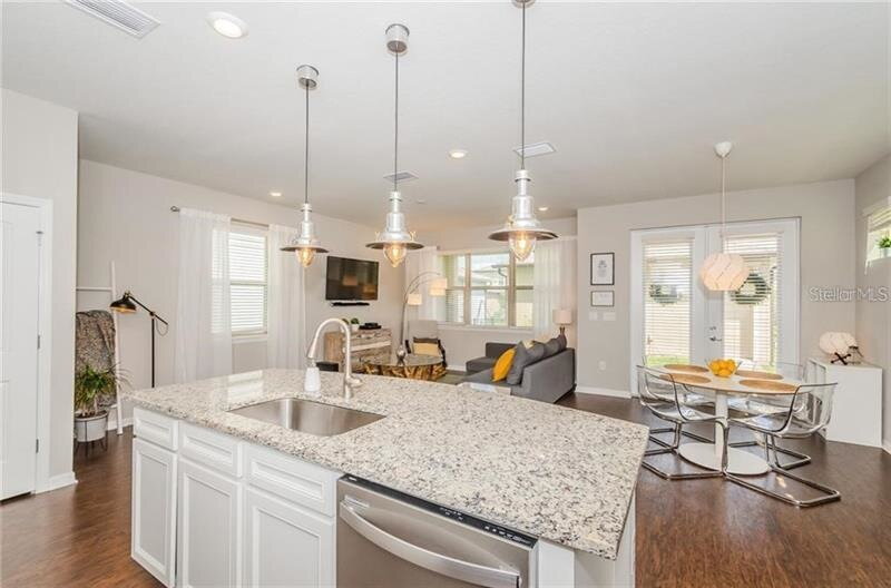 UNFURNISHED: Welcome to this beautifully maintained 3-bedroom, 2.5-bathroom home with a dedicated office located in the highly desirable Starkey Ranch community. Enter into the entryway with stairs to the left and an office to the right, currently staged as a formal dining room in photos. Down the hall you’ll find a convenient half bathroom before the home opens into a bright, open-concept living, kitchen, and dining area. The kitchen features stainless steel appliances, granite countertops, and bright cabinetry. All downstairs flooring has been upgraded to neutral mid-tone LVP flooring (not pictured). French doors off the dining area lead to a pavered back porch and fully fenced yard, perfect for relaxing or giving kids and pets space to play. The home also offers a detached 2-car garage. Back inside and upstairs, you’ll find a versatile loft space, an upstairs laundry room, and all bedrooms. The primary suite includes an ensuite bathroom with walk-in shower, while two guest bedrooms share a full bathroom with tub/shower combo.