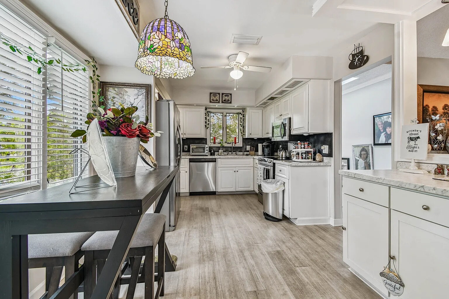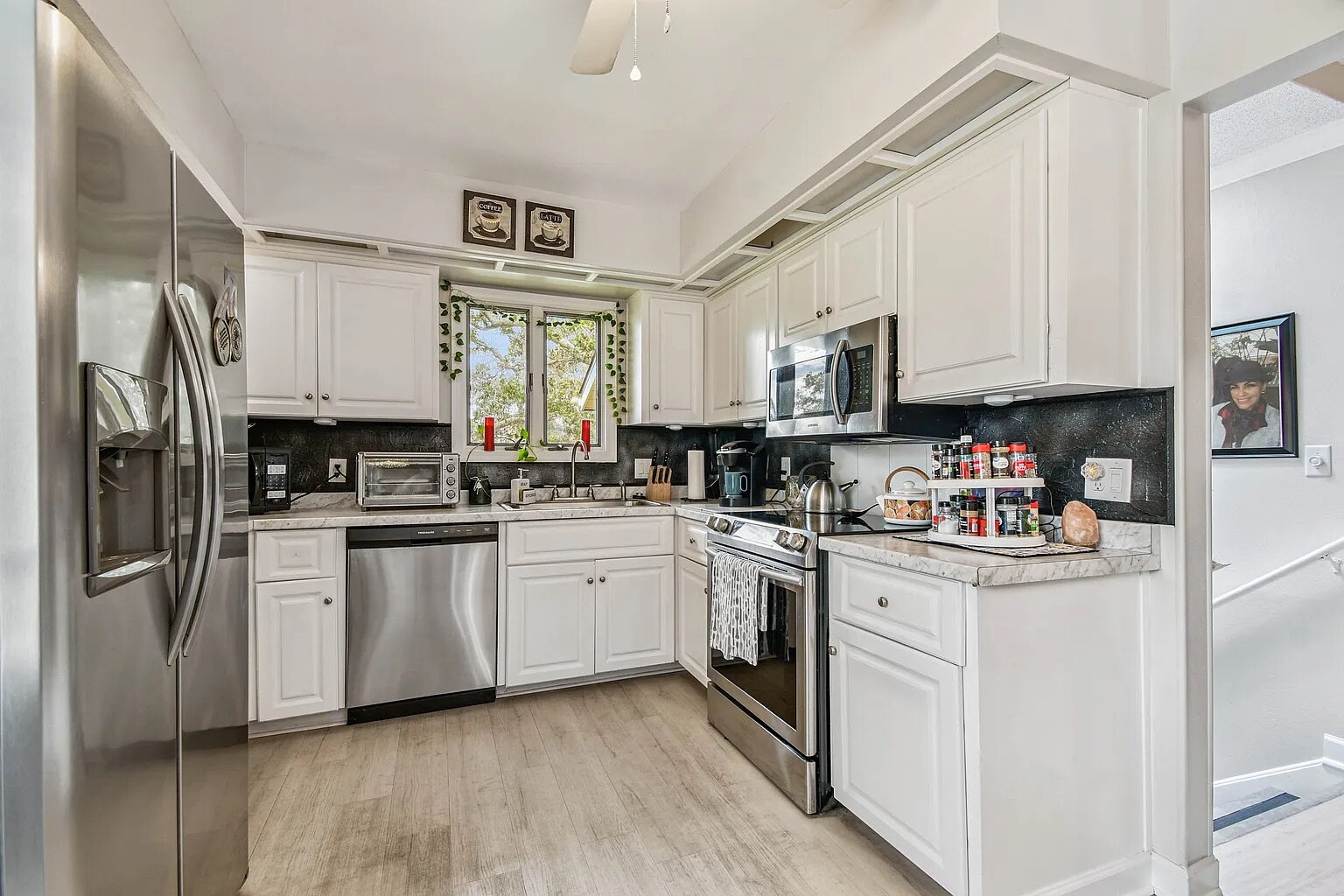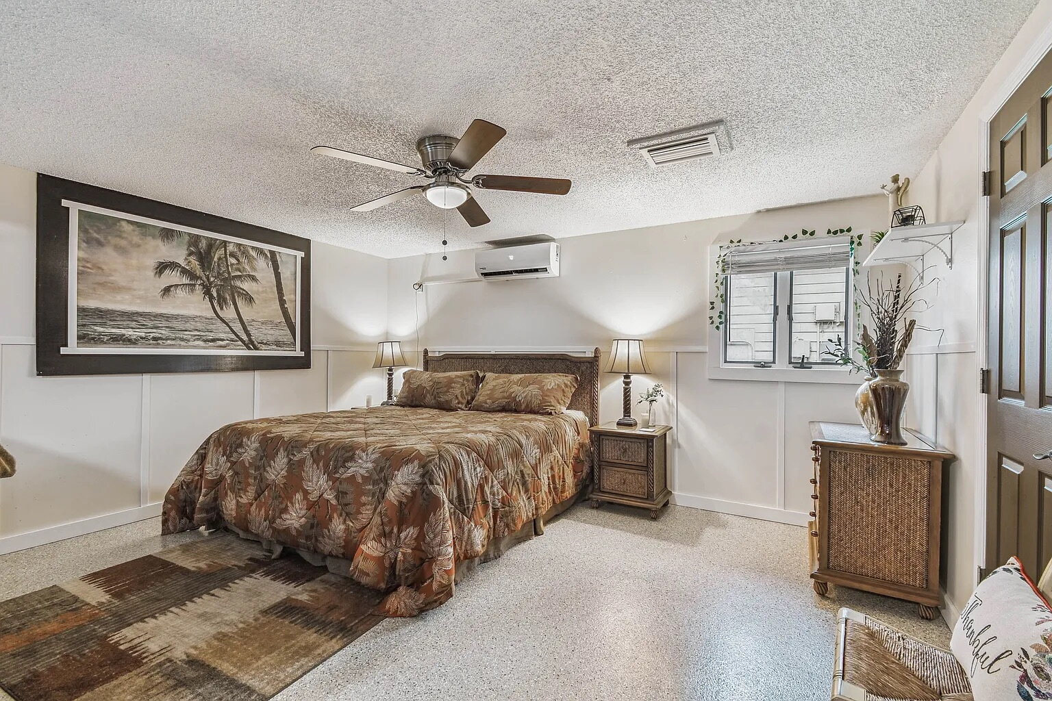 The main level features 2 bedrooms, 2 bathrooms, a kitchen with stainless steel appliances, a comfortable living area, and laundry. The extended covered and screened lanai is an ideal spot to relax and unwind. Downstairs, you’ll find a newly remodeled, air-conditioned 743-square-foot space offering a family room, 3rd bedroom, office, and extra storage.